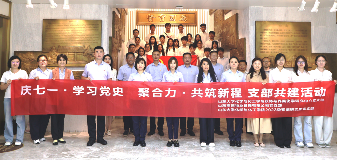 6月26日,化学与化工学院胶体与界面化学研究中心党支部联合山东高速物业管理有限公司党支部、化学与化工学院2023级硕博研究生党支部,共同举办“庆七一学党史 聚合力筑新程”主题党日活动。
