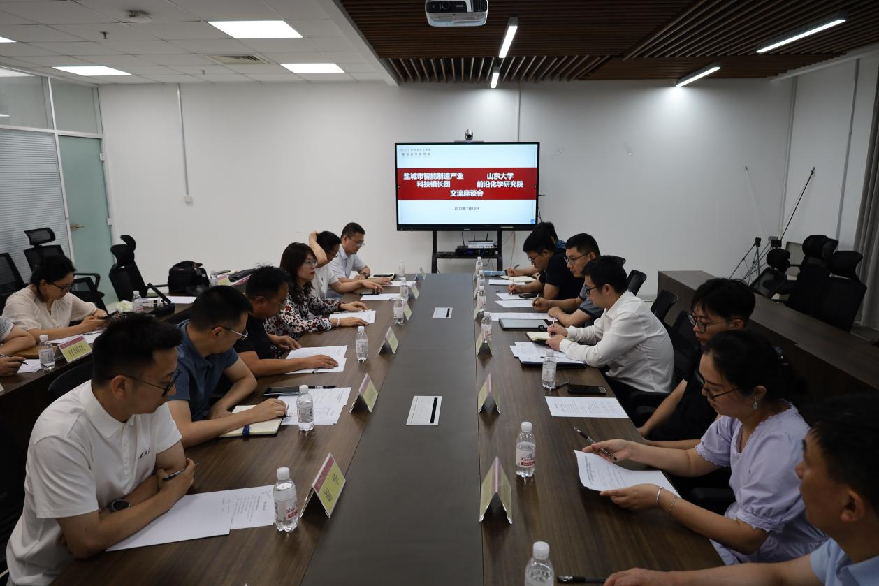 2025年7月16日,江苏省科学技术协会学会学术部副部长、盐城市智能制造产业科技镇长团团长、东台市副市长鲍张智率队访问山东大学前沿化学研究院。化学与化工学院副院长、前沿化学研究院院长邓伟侨,院长助理马海波、杨文龙出席会议,多名研究院教师代表参加会议。会议由副处级辅导员张洁主持。