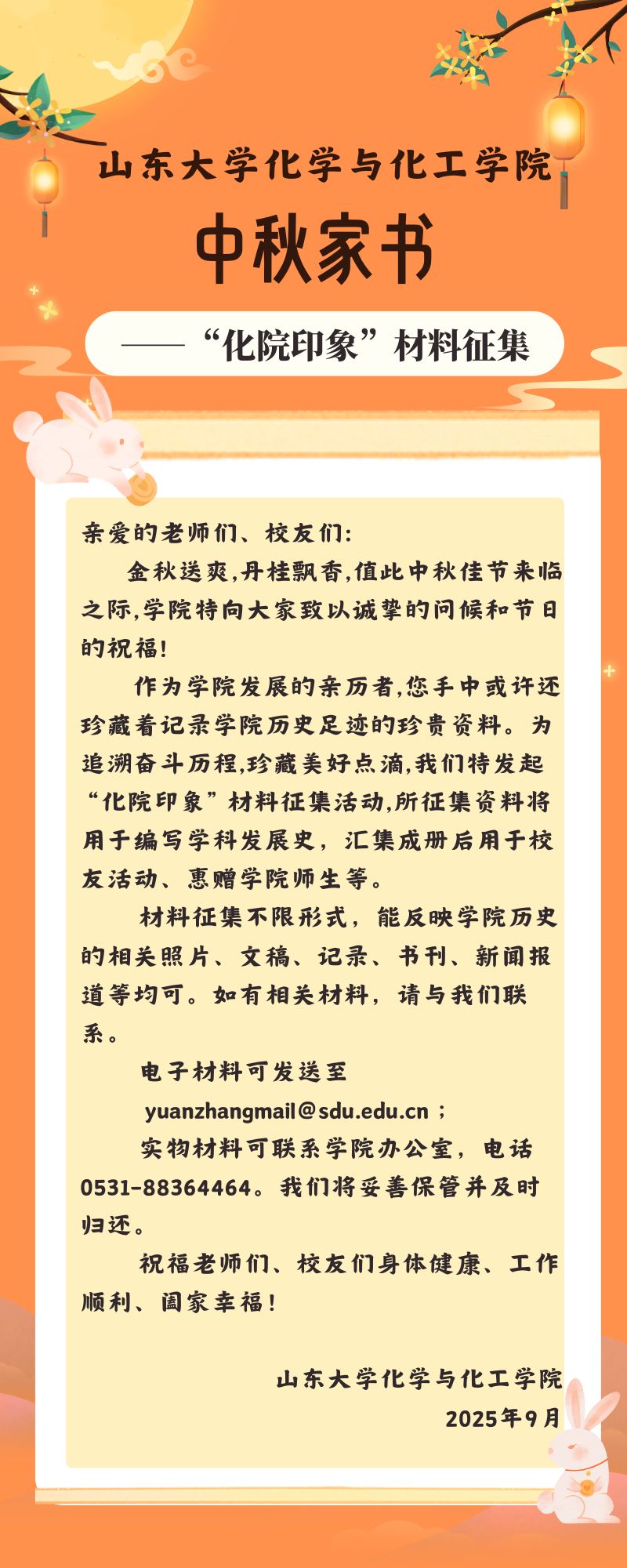 山东大学化学与化工学院中秋家书——“化院印象”材料征集